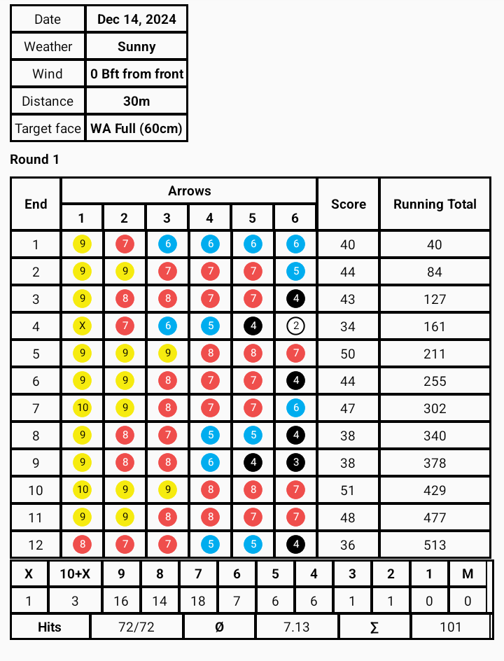 原因はいくつかあると思うが、不思議なことにすべてのミスが矢が右にいくミスばかり…自分の想像の上では。