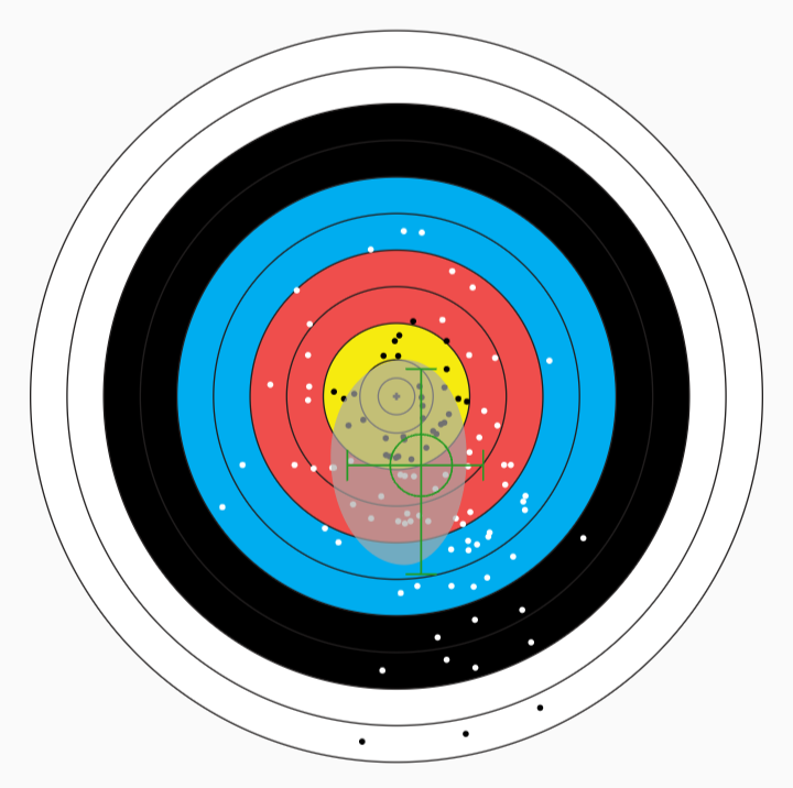 それ以外、ぶれて外した場合は全体的にバラけて青に飛ぶ。失敗しても赤に収まるレベルにするにはまだまだということか
