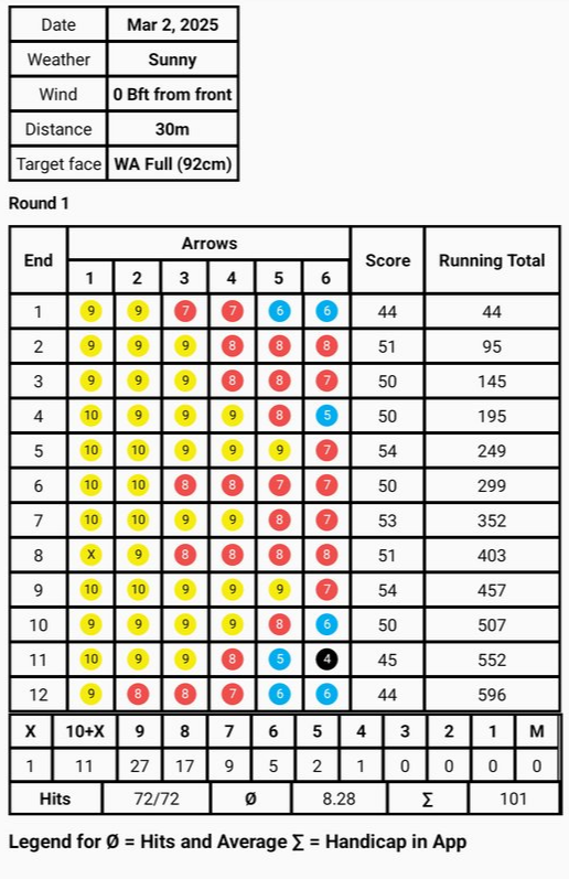 いい得点をだすには、得点を気にしてはいけないし、直前の得点、周りの状況などを考えていてはだめだ。いつも通りに、射に意識を集中しなければならない。フォーム、狙い、リリース。