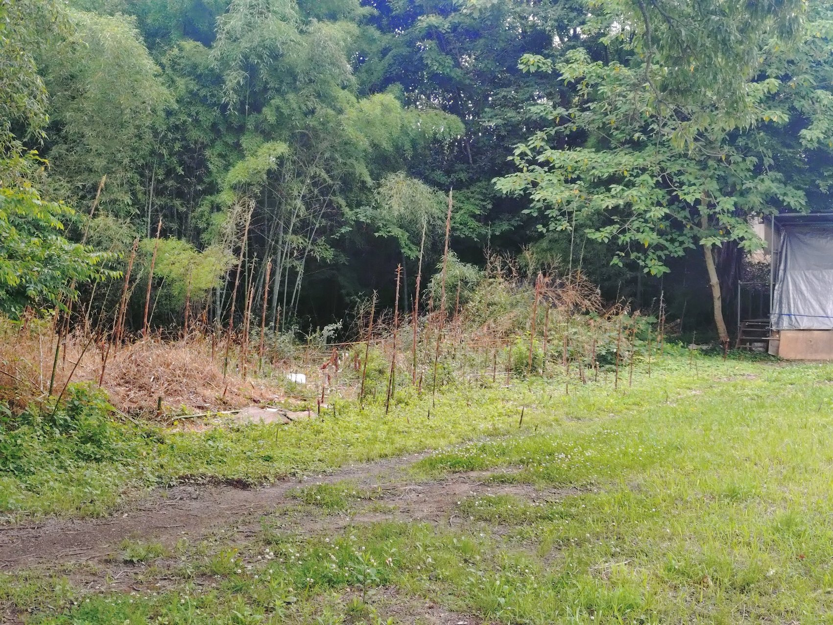 竹林開拓 2025/06 雑記 2025/07/08 切ったそばから生えてきて恐ろしいですね! 頑張って、向こう側まで切り開いて、45mくらいは打てるようになるかも。 ゆくゆくは左側もきれいにして、50mを何人かで練習できるようにしたいところ。