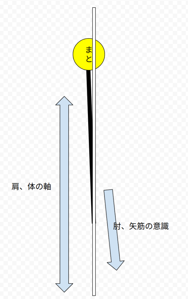 矢が目線の真ん中の意識というより、ちょっと右にノックがあって、矢筋が通ってる感覚でまっすぐ行く。